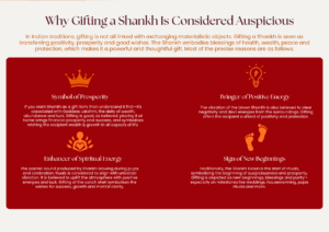 In Indian traditions, gifting is not all linked with exchanging materialistic objects. Gifting a Shankh is seen as transferring positivity, prosperity and good wishes. The Shankh embodies blessings of health, wealth, peace and protection, which makes it a powerful and thoughtful gift. Most of the precise reasons are as follows.