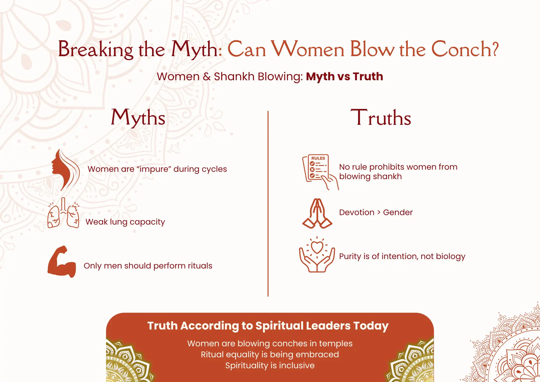 Urban development and inclusive spiritual spaces are now welcoming women in sacred rituals. From Shankh Puja Vidhi to blowing of it—everywhere, women are now participating in it.