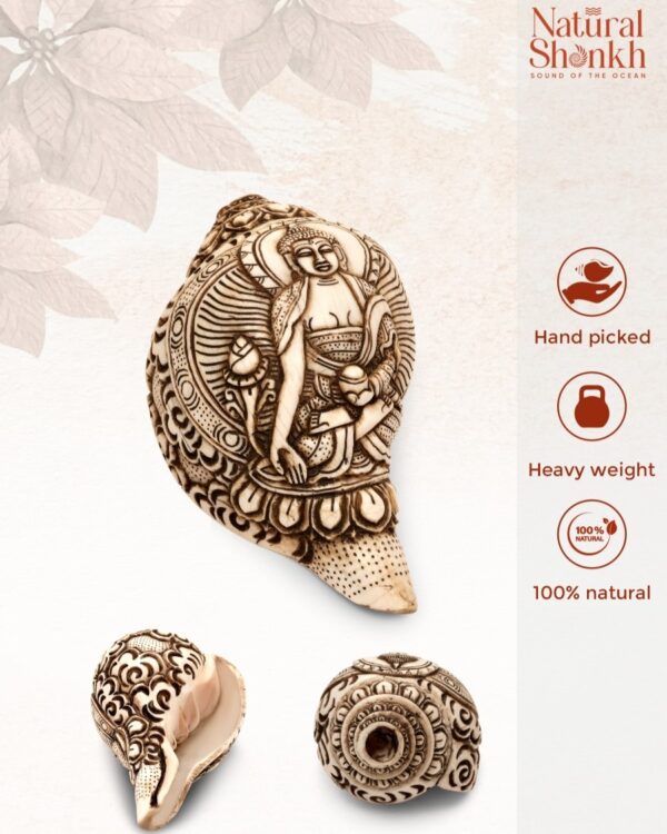 - Buddha Carving Shankh – Symbol of peace, wisdom, and enlightenment. Ideal for meditation spaces.