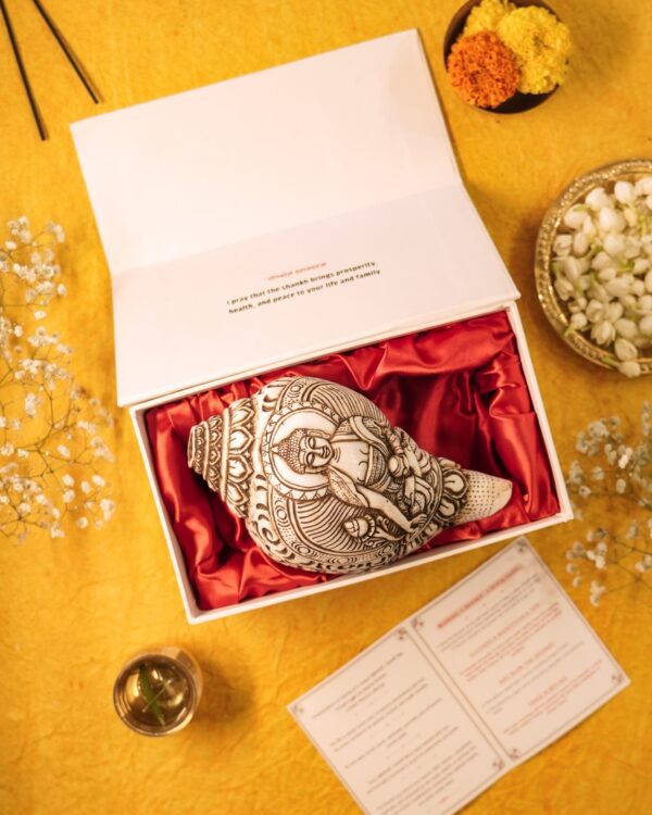 - Each carving is hand-etched, making every Shankh one-of-a-kind.