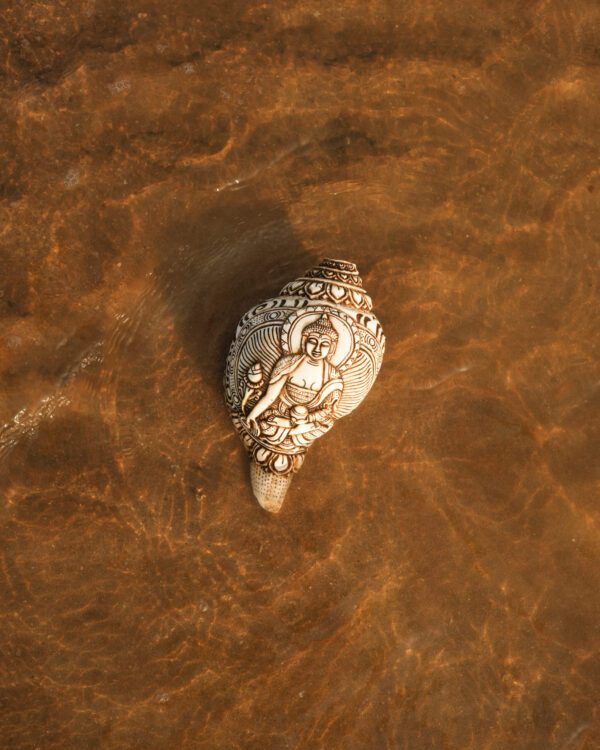 The Buddha Shankh can be placed in your meditation area to create a peaceful atmosphere or blown during rituals to purify the environment and focus the mind.