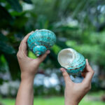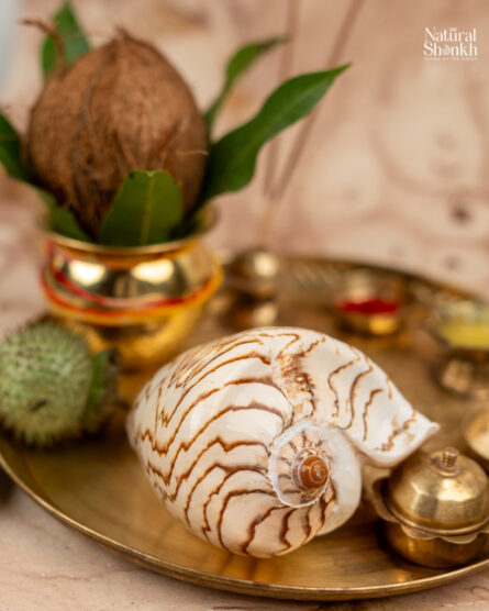 The Green Turbo is a beautifully designed decorative piece inspired by the natural shape of conch shells. It can be placed in living rooms, temples, or office spaces to enhance spiritual energy and aesthetic appeal.