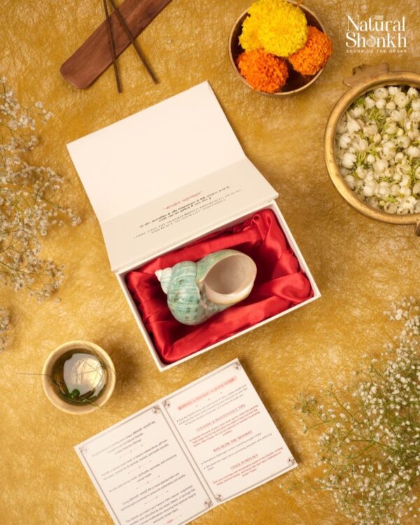Care Instruction : Wash the shankh gently with salted warm water once a week for deep cleaning.