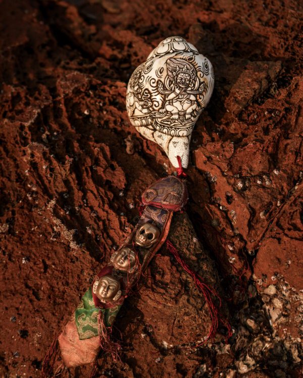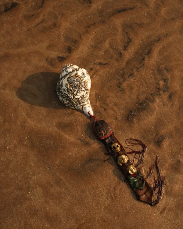 The Mahakal Shankh is a sacred conch shell intricately carved with depictions of Lord Mahakal, symbolizing divine protection, spiritual awakening, and the dispelling of negative energies.