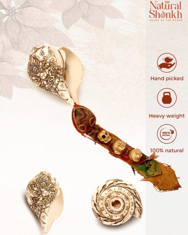 - Each carving is hand-etched, making every Shankh one-of-a-kind.