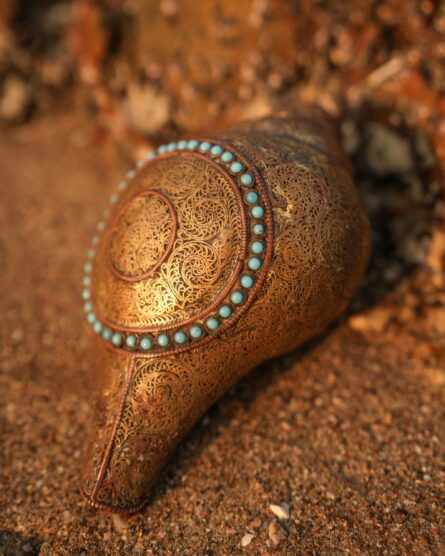 The Under the Rocks Shankh collection features uniquely shaped conches that have taken shape beneath the pressure and embrace of natural rock formations over a certain period of time.