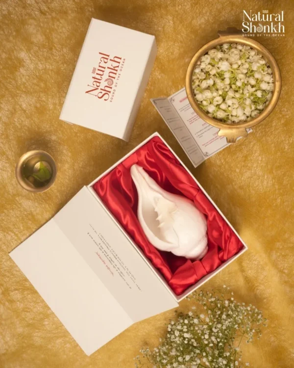 - Shankh unites earth, water, fire, air, and space — resonating with the eternal sound “Om”.