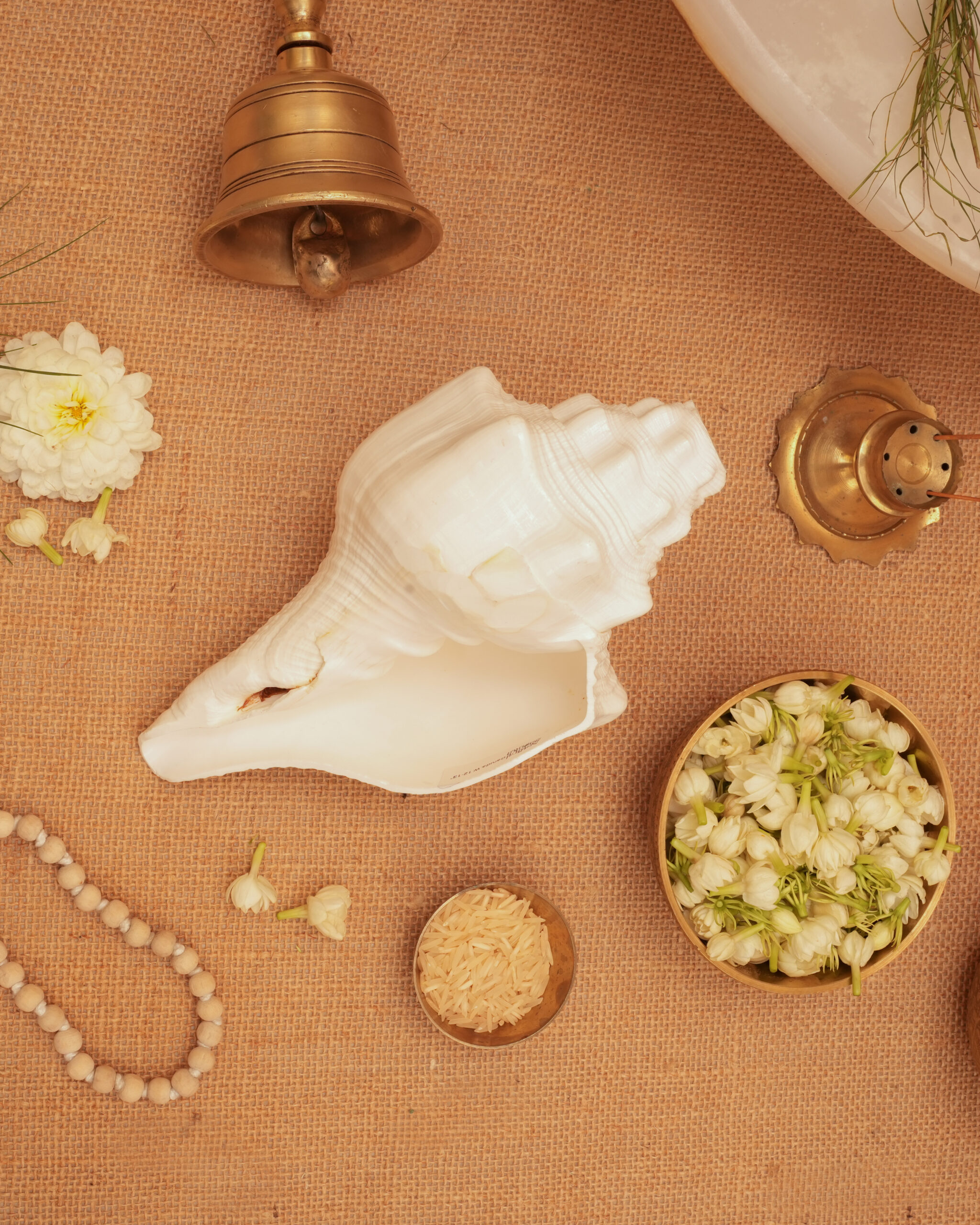 The white color represents purity, clarity, and divine energy. It enhances the power of the conch shell and is believed to bring spiritual awakening and peace during rituals.