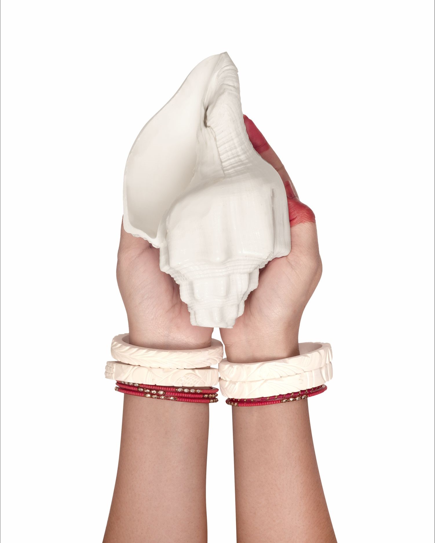 - Press the shankh against your lips and blow steadily.
